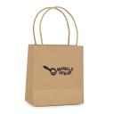 Paper carrier bag with twisted paper handles. Manufactured from brown or white kraft paper. Prices are based on a 4 colour process print to 1 side. The print area is near the handle of the bag.