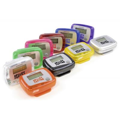 Basic plastic step counter pedometer available in various colours. Batteries included.
