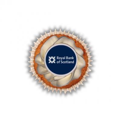 4 Freshly baked cupcakes with a sponge base, flavoured frosting and a full colour edible logo image, boxed in a giftpack. 4 or 5cm branding area available.