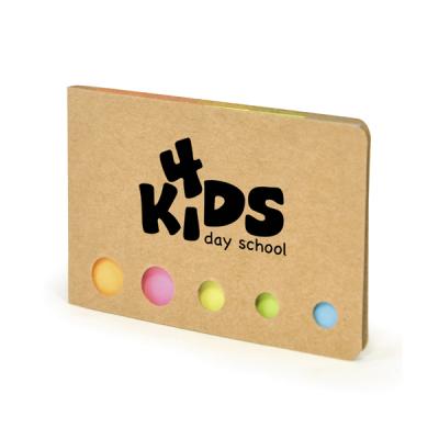 Multifunctional recycled natural card flip open set with 60 sheet notepad, 25 yellow sticky notes, flags in orange, pink, yellow, green and blue, mini pen with black ink and press stud close. An ideal giveaway for any school or office environment.