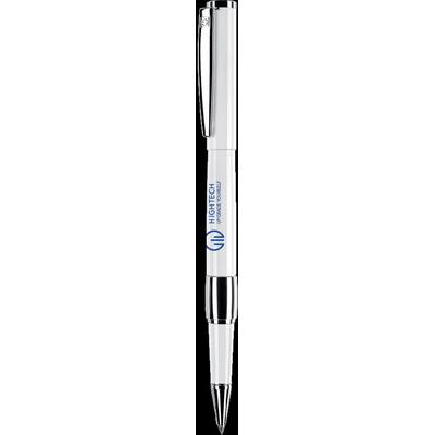 Rollerball with opaque high-gloss finish white barrel and chrome trim. Fitted with large capacity Magic Flow metal refill. Supplied in individual black card gift box.