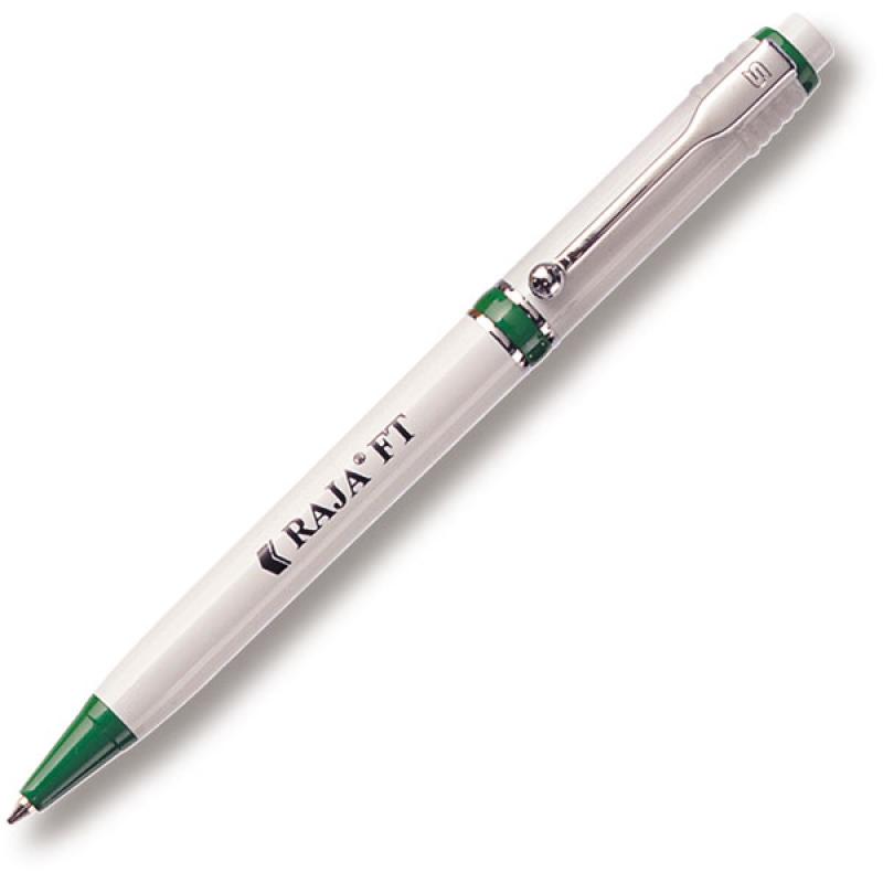 Raja Ft Retractable Plastic Ball Pen Solid White Barrel With Coloured Trim Blue Ink Refill